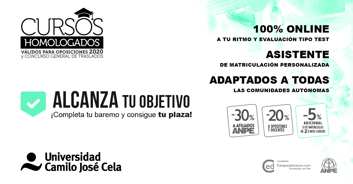 La Universidad Camilo José Cela desde su Facultad de Educación, y Campus Educación, referente online en el sector educativo y en la formación para oposiciones, presentan una completa oferta de Cursos Homologados Online.