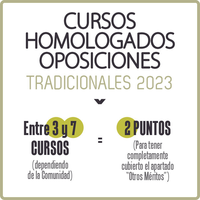 Para todas las comunidades, en los baremos de las oposiciones tradicionales se reserva hasta un máximo de 2 puntos que poder obtener mediante distintas actividades de formación permanente y Cursos Homologados para Oposiciones.