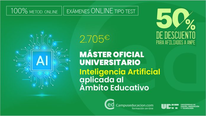 Matricúlate ya en el Máster Oficial Universitario en Inteligencia Artificial en el Ámbito Educativo con exámenes online tipo test y un 50% de descuento.