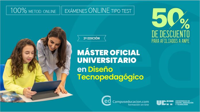 Máster Oficial Online en Diseño Tecnopedagógico con un 50% descuento. Comienza en marzo. Compartir en XCaracterísticas del Máster Oficial Universitario en Diseño Tecnopedagógico: