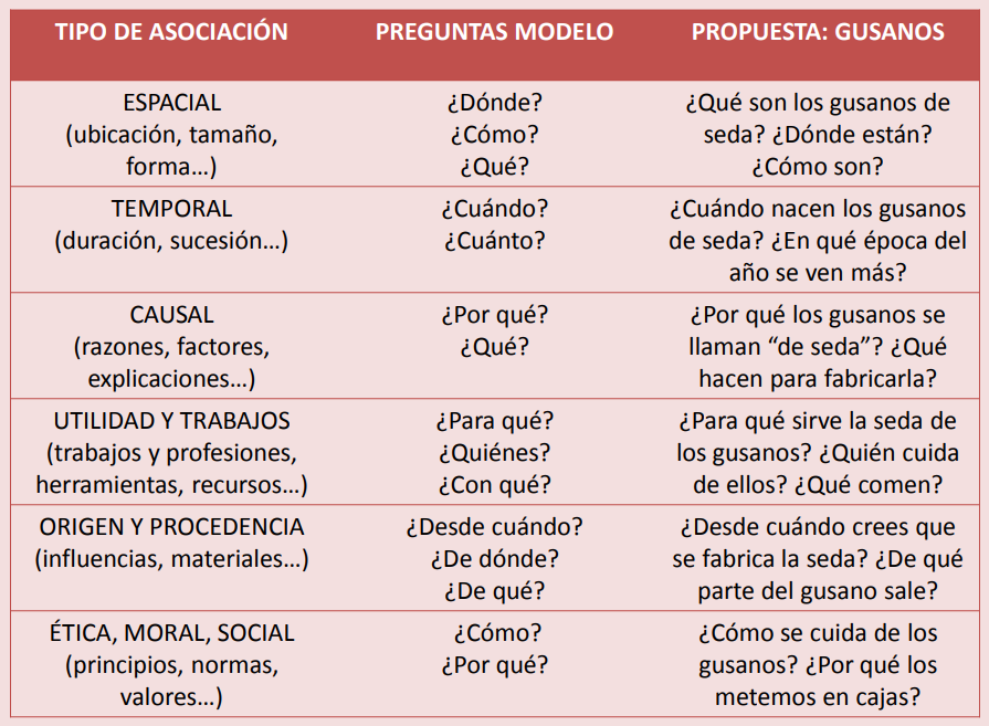 Las preguntas modelo y el tipo de asociación que se realiza con ellas sobre la propuesta a estudiar desencadena diferentes respuestas o, lo que es lo mismo, distintos contenidos a tratar.