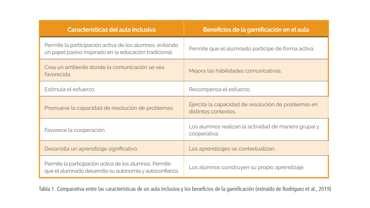 De esta forma, en la siguiente tabla se muestra una comparativa entre las características que crean un aula inclusiva y los beneficios que ofrece la gamificación en cuanto a la inclusión educativa.