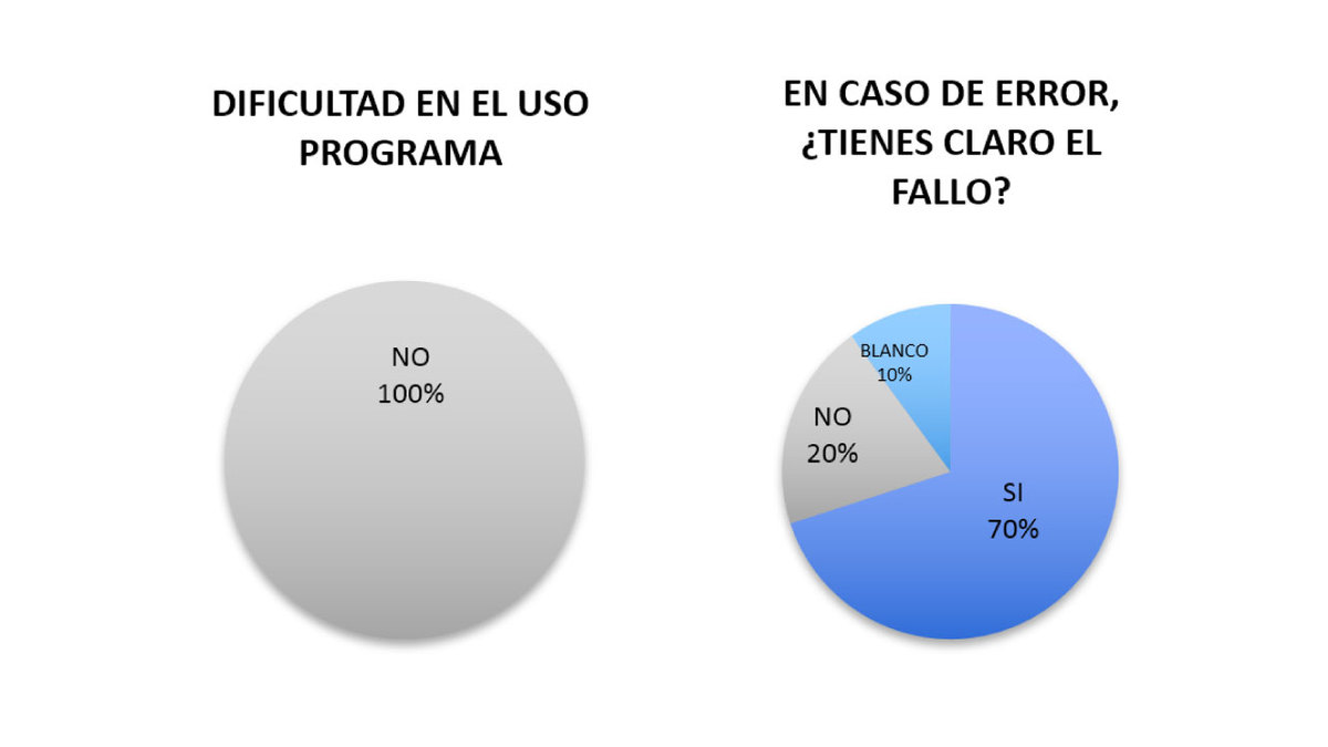 El uso de las TIC en los adolescentes de hoy en día ha incrementado mucho y ha estado presente desde etapas muy tempranas de su proceso formativo (Castro et al., 2014). Esto puede que sea una de las cuales por las que el 100% de los alumnos ha respondido negativamente ante la dificultad del uso del laboratorio virtual. A pesar de ello, en el caso de que algo les saliera mal en el transcurso de la actividad experimental, el 20% no ha sido capaz de averiguar la causa de dicho error que le impide avanzar.
