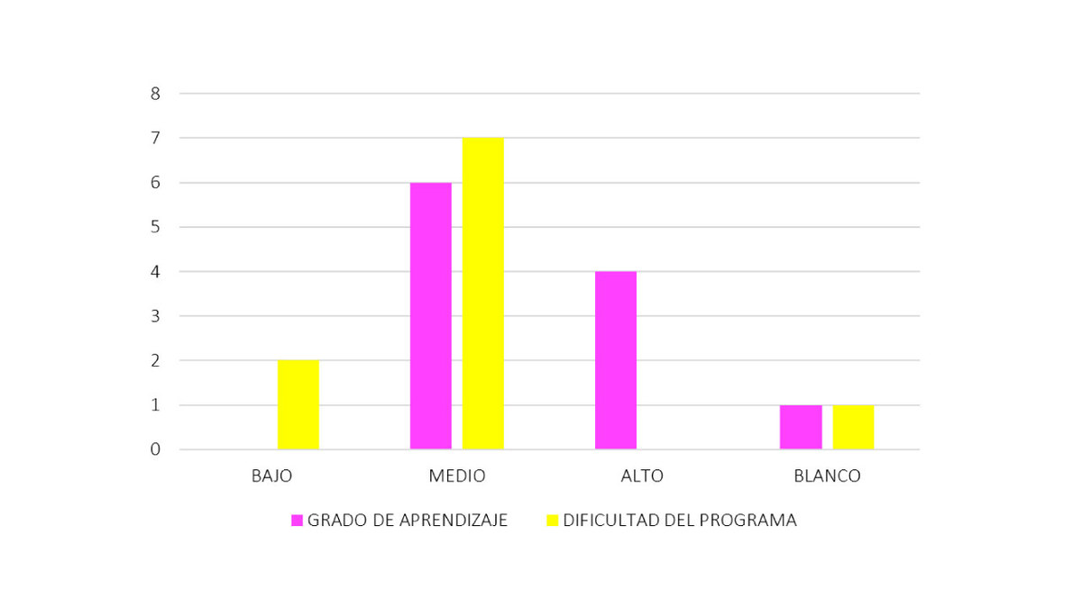 Finalmente, la mayoría de los alumnos consideró que tanto el grado de aprendizaje como la dificultad en el uso de los laboratorios virtuales es medio.
