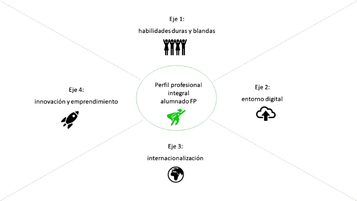 Como se puede observar en la figura 1, todas estas premisas conducen a generar el perfil profesional para el alumnado de FP que pueda adaptarse a las necesidades del mercado laboral.